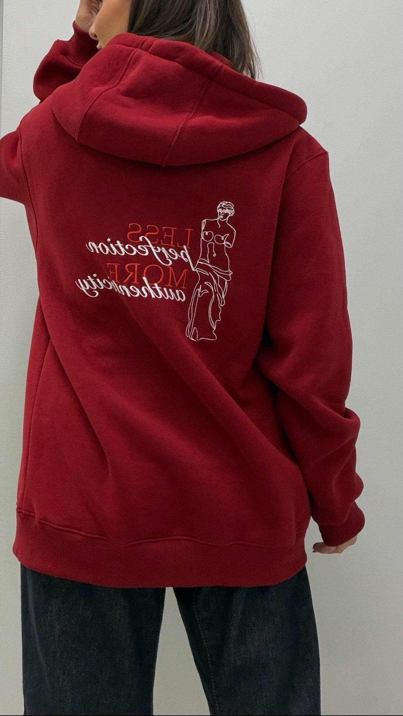 Στην πλάτη ξεχωρίζει ένα όμορφο σχέδιο με την Αφροδίτη της Μήλου, μαζί με τη φράση “Less perfection, more authenticity”, που δίνει έναν καλλιτεχνικό και αυθεντικό χαρακτήρα στο κομμάτι.