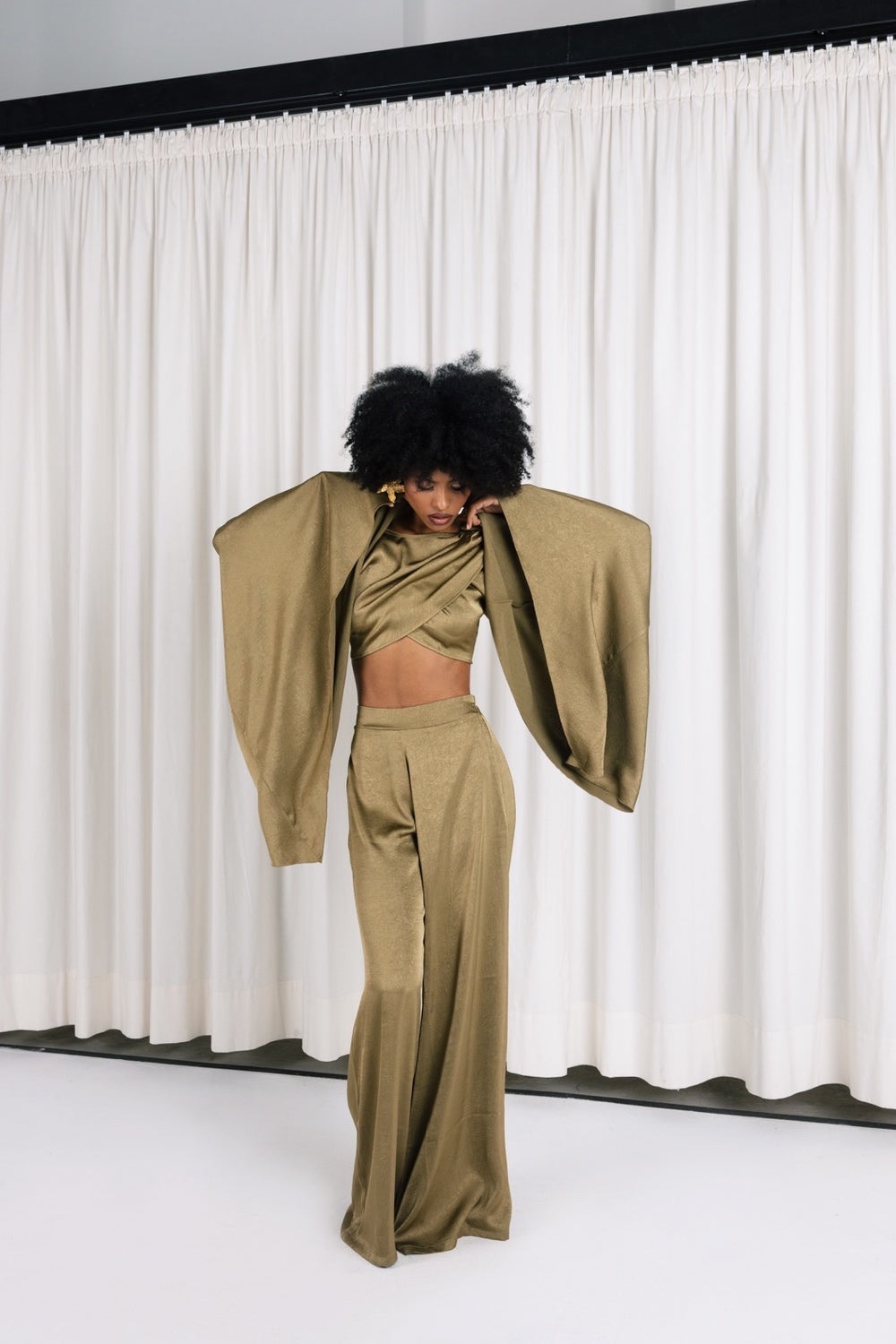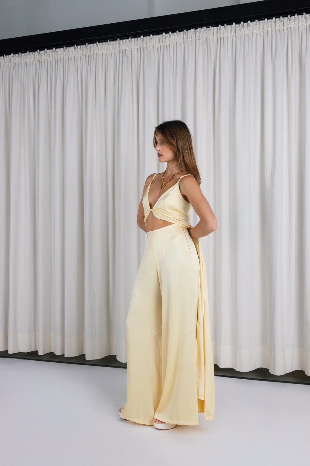 These high-waisted trousers offer a perfect balance of form and flow. Crafted from lightweight fabric with an all-over nature-inspired print, they feature a side zip and a discreet elastic panel at the back waistband — allowing for a smooth, flattering fit.