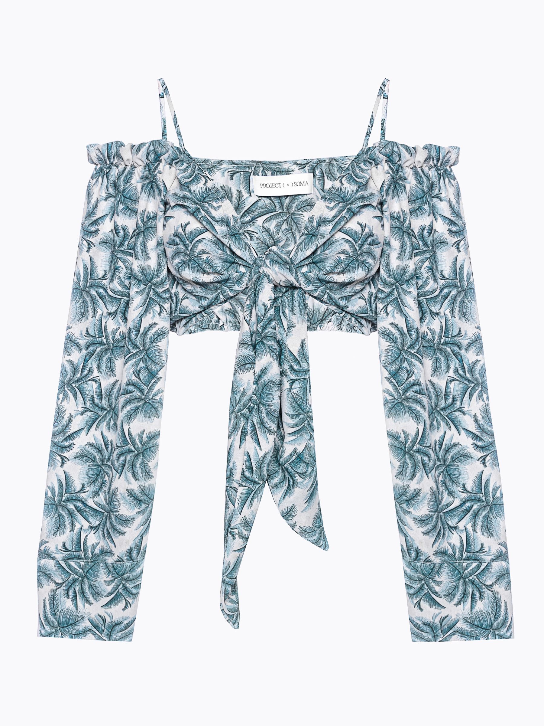 Το PROJECT SOMA Malik T-Shirt κατασκευάζεται από ανάλαφρο κρεπ ύφασμα. Cropped top με δέσιμο μπροστά και μανίκια τύπου κιμονό.