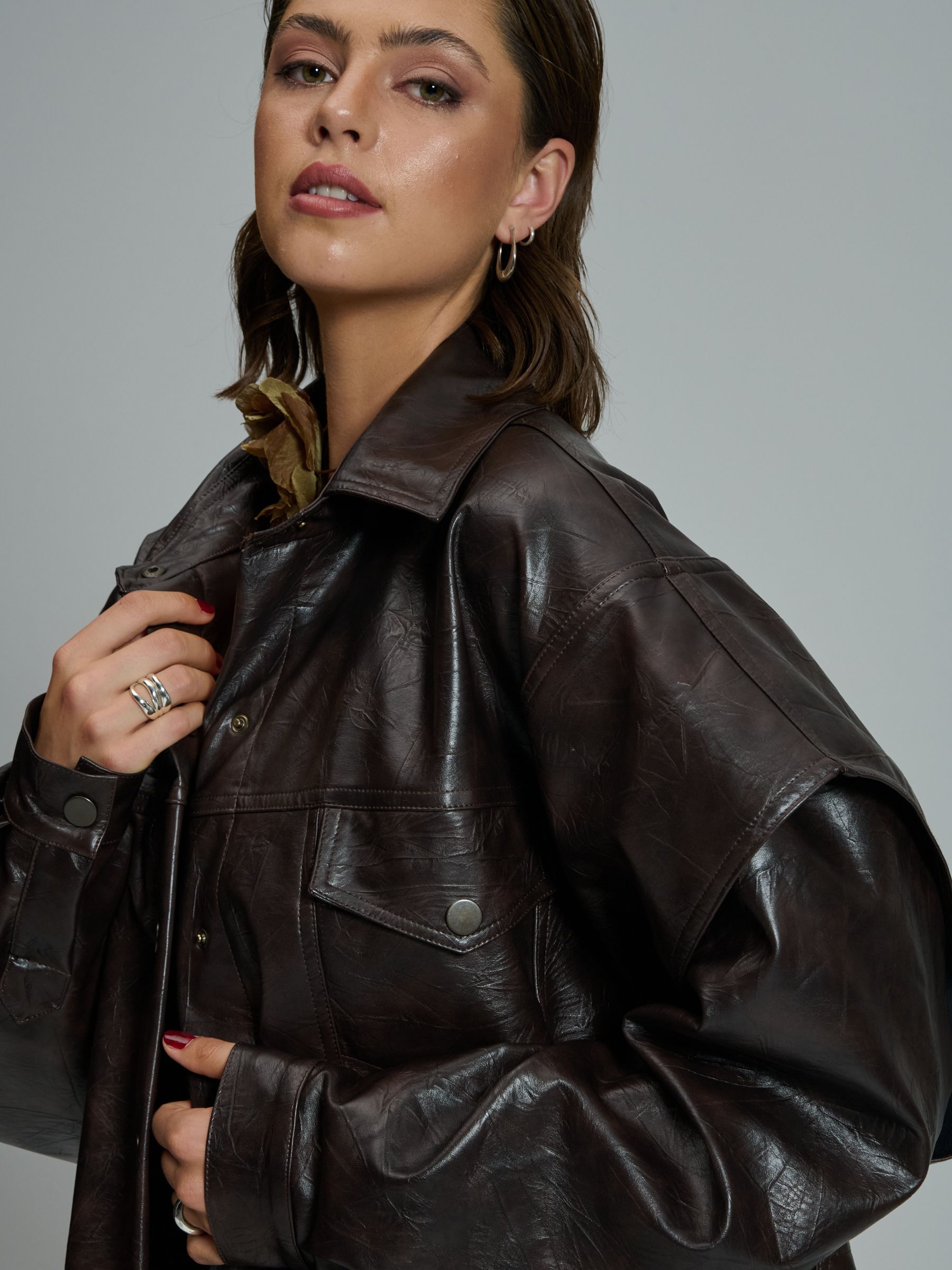Το PROJECT SOMA Susanna Jacket κατασκευάζεται από eco-leather ύφασμα. Oversized jacket με λεπτομέρειες στους ώμους.