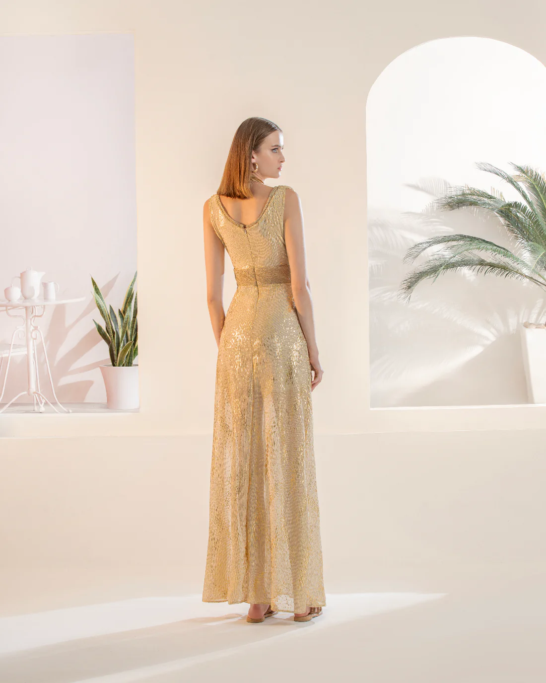 Αυτό το λαμπερό ρούχο είναι τέλειο για καλοκαιρινές ειδικές περιστάσεις. Με τη ρέουσα σιλουέτα του και τις αστραφτερές υφασμάτινες λεπτομέρειες στο λαιμό και τη μέση. Λάμψτε χρυσό όλη την εποχή αυτή τη σεζόν στο Tan Dress.